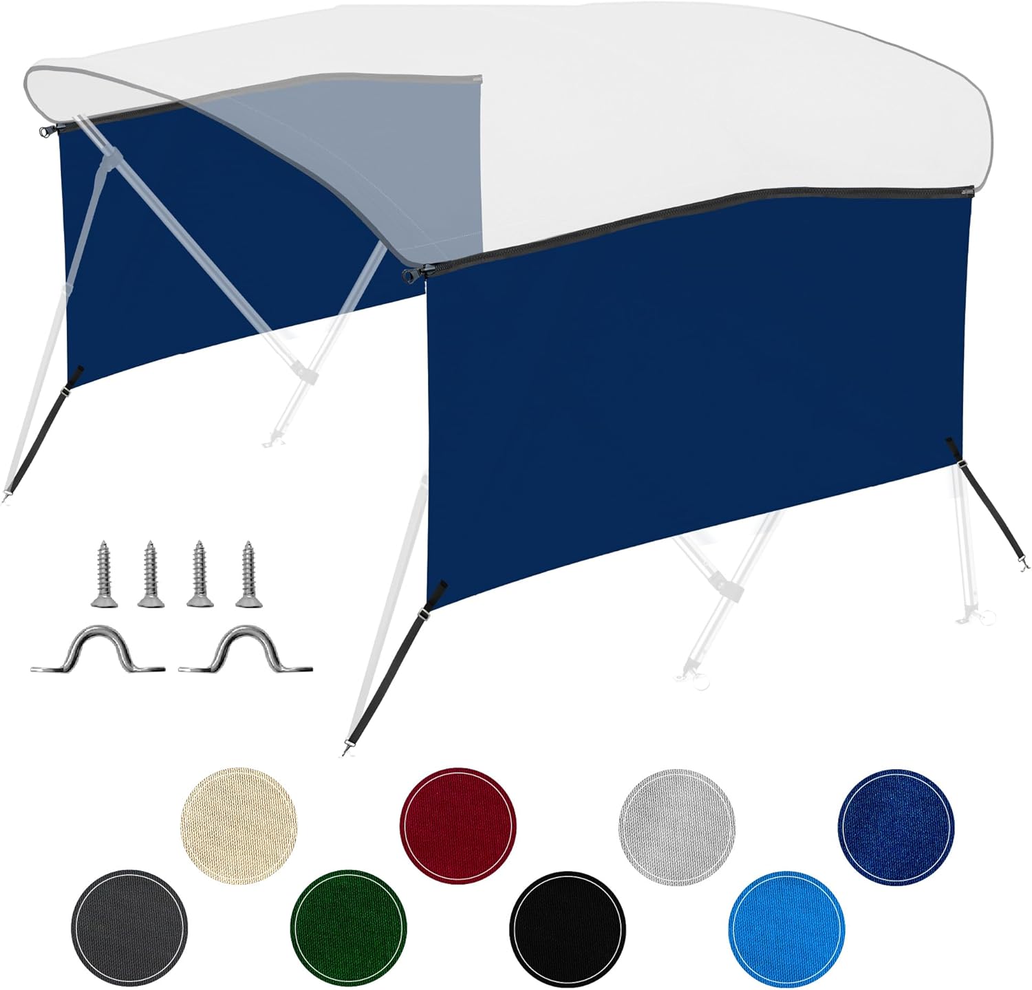 Features: [WORKS WITH KNOX PRO SERIES BIMINI TOP] - Upgrade your shade and privacy with sidewalls designed to attach to KNOX's 3 bow and 4 bow Bimini top canvas with pre-installed zippers. Ensure your existing Bimini canvas has zippers before buying KNOX's Bimini top side shade add-on. [SIDEWALLS FOR PRIVACY, SHADE AND CROSSWIND] - Bimini sidewalls are a great add-on when you want to elevate your 3 bow and 4 bow KNOX Bimini boat enclosure to provide maximum sunshade, privacy, and crosswind resistance. [NEVER FADES] - Our eight side wall color options and mesh Bimini top side covers are 100% solution-dyed. Embedded directly into the fiber, solution dye allows our solid and mesh sidewall fabrics to withstand years of exposure to UV radiation and saltwater elements without fading. [SOLID CANVAS & MESH SIDEWALLS AVAILABLE] - With KNOX, you have the ability to combine your 3 bow or 4 bow Bimini top for boat with solid canvas or mesh fabric sidewalls (sold separately). Both provide privacy and protection from UV rays. Own both Bimini sidewall types for optimal comfort. [TRUSTED BRAND FOR 20 YEARS] - Since 2004, KNOX has been providing customers with the best products to make their boating experience better. The brand you can trust for quality boat accessories, pontoon boat accessories, and sailboat accessories. Specifications: Material: 900D Oxford Polyester Bow Type: 4-Bow Size: 80"L x 26"H Brand: KNOX Color: Hunter Green Condition: 100% Brand New Package Includes: 2x Side Wall Canvas 1x Mounting Hardware 1x Installation Manual