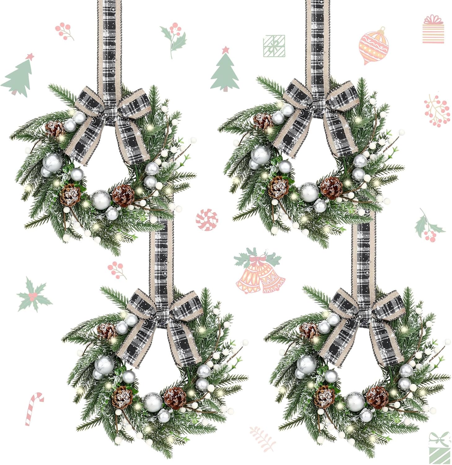 Features: Multiple uses: The Christmas wreaths for cabinets aren't only for farmhouse decor, rather they can be applied for winter decorations, parties, and Christmas. Plus, they can serve as an elegant background for photography as well. Gift option: As a beautiful and practical decoration, the mini Christmas wreaths can make a thoughtful housewarming gift. Share them with friends, family members, or neighbors to express your love and care. Specifications: Material: quality materials Color: mainly green Size: Wreaths: about 9 inches/ 23 cm outer diameter and about 4.7 inches/ 12 cm inner diameter Ribbon: about 17.72 inches/ 45 cm long Package includes: 4 x Christmas cabinet wreaths Notes: Manual measurement, please allow slight errors on size. The color may exist a slight difference due to different screen displays.