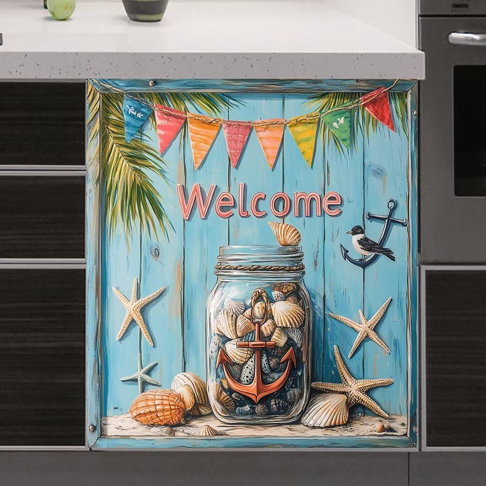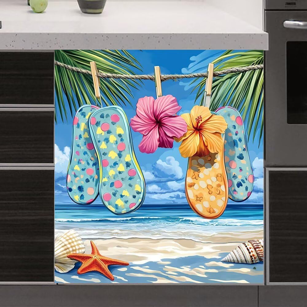 REFRESHES YOUR APPLIANCES!If you have a dishwasher full of scratches and concave surfaces, it doesn’t fit your kitchen!Do you want it to look brand new?Give the dishwasher a second life!we magnetic dishwasher cover can help you.Metal Relief Palm Trees Dishwasher cover magnet refreshes you appliancesBeautiful and practical! Don't need to spend a lot of money. You can have "new" dishwasher.【size】23 W x 26 H inches (58.5 W x 66 H cm)Dishwasher magnet cover fits 90% of dishwasher panels, but you can easily trim it to the size of the front face of your dishwasher.【Materia】This dishwasher magnetic covers are made of PVC and PET Film and Magnet. Easy to Install, No Other Tools are Required.ATTENTION:p>1.Make sure your appliance has a metallic surface which attracts magnets. Take a big fridge magnet and place it onto the dishwasher. This is to test If the magnet doesn't stick neither will this product. If the Fridge Magnet sticks this probably wont stick well or at all. Its very important you have a strong magnetic dishwasher, Most Do!2. If the dishwasher cover doesn't stick use strong glue or double sided tape.Our magnetic dishwasher panel cover is a perfect complement to your DIY kitchen upgrade!