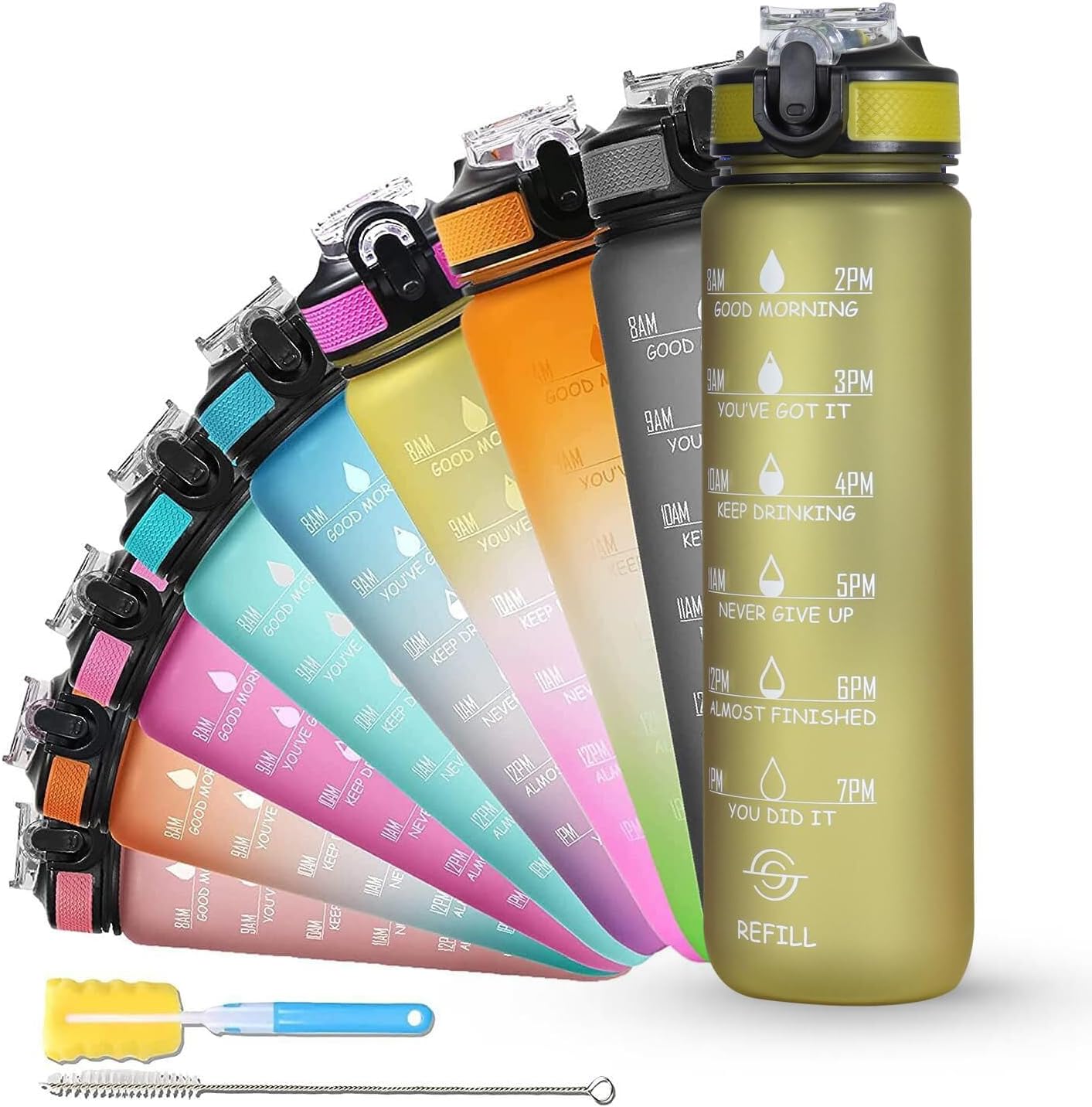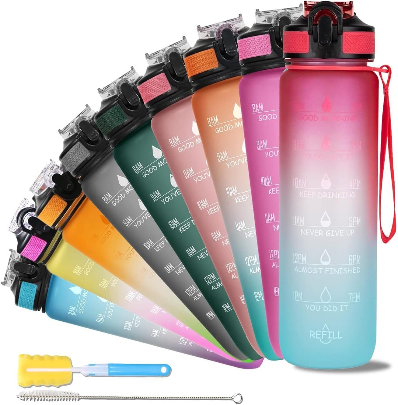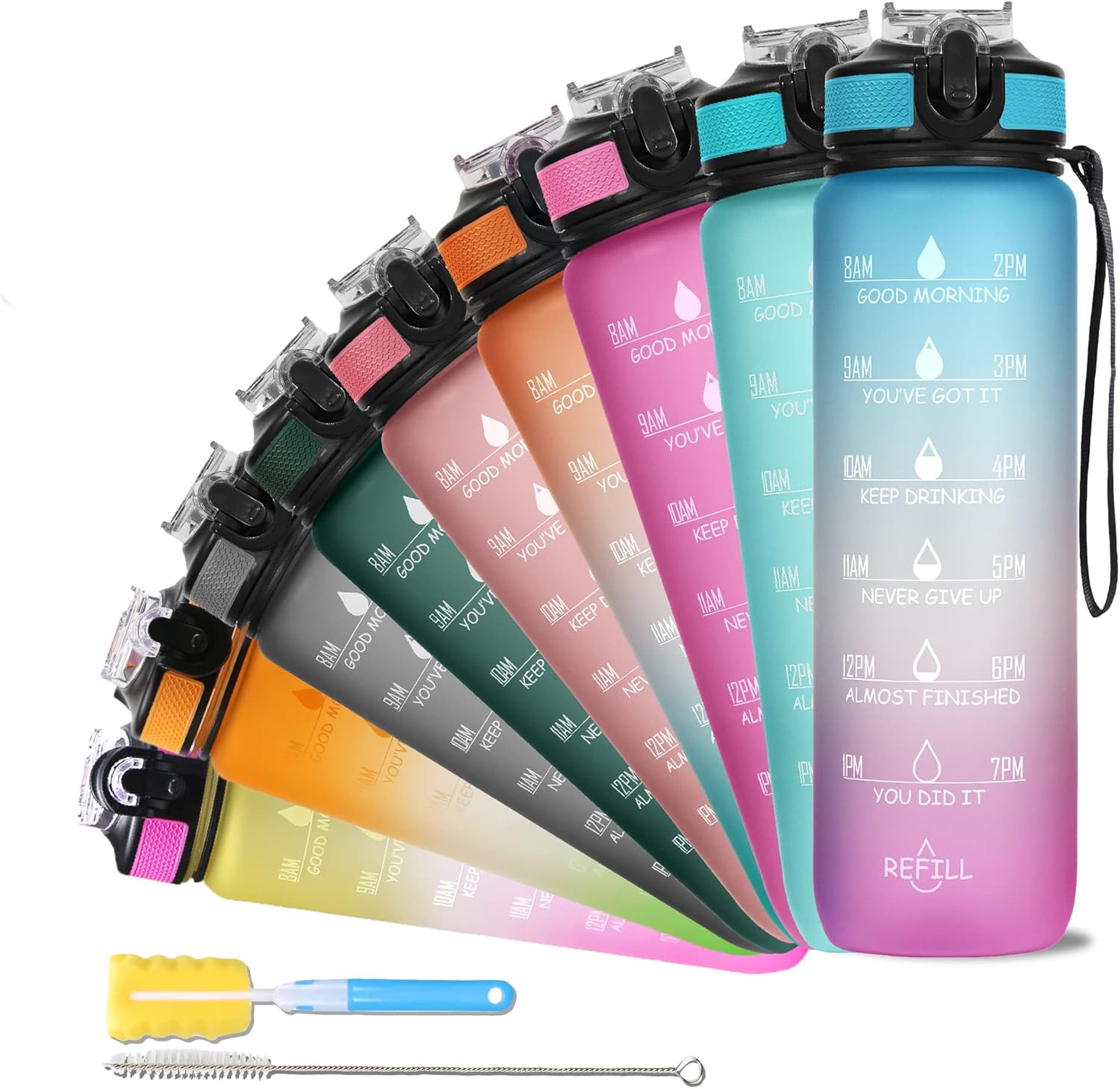Included Components Motivational Sports Water Bottle, Bottle Brush, Straw Brush