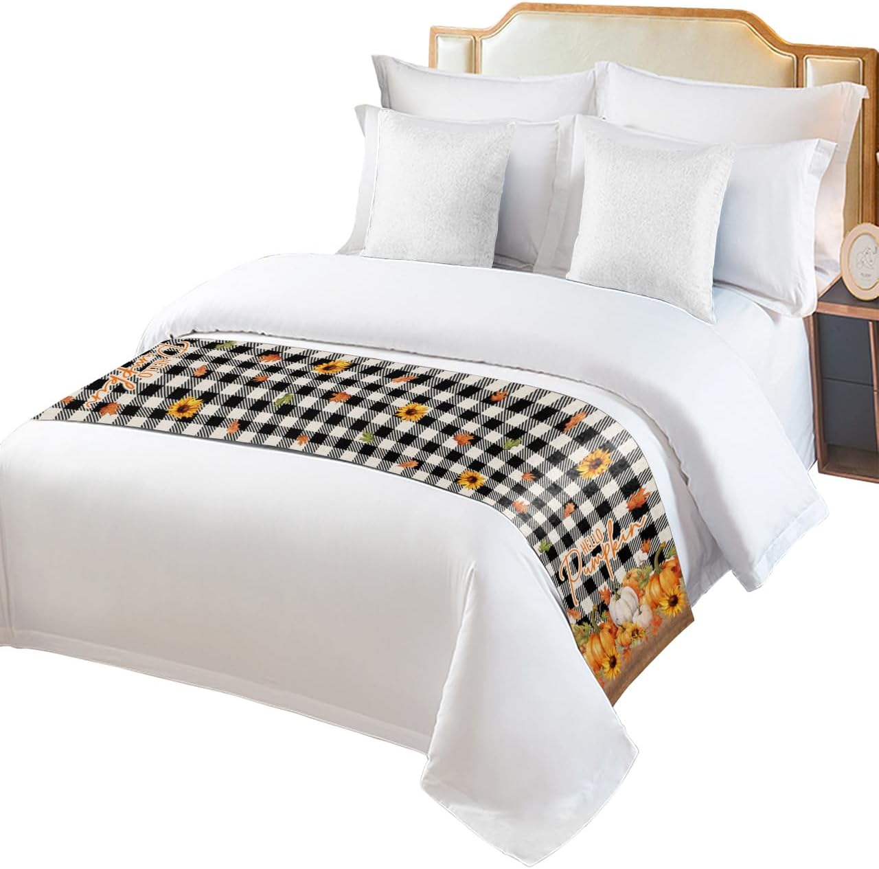 Package included:1 x Bed RunnerQuality Material:Bed scarf runner is made of polyester,soft,comfortable and durable.Various Sizes:71x20in=180x50cm,suitable for Twin size bed.83x20in=210x50cm,suitable for Full size bed.94x20in=240x50cm,suitable for Queen size bed.102x20in=260x50cm,suitable for King size bed.Note: Please allow 2-4cm error due to manual measurement.Bed Scarf Protection:Protect your bed from stains and pet scratches,keep the bed clean and tidy.Decorative Bed Runner:Beautiful bed scarf can create a unique look of your bed,perfect for home bedrooom,hotel rooms,guesthouses,dorm rooms or wedding rooms.Machine Washable:Washing in cold water,easy to clean.Do not bleach.