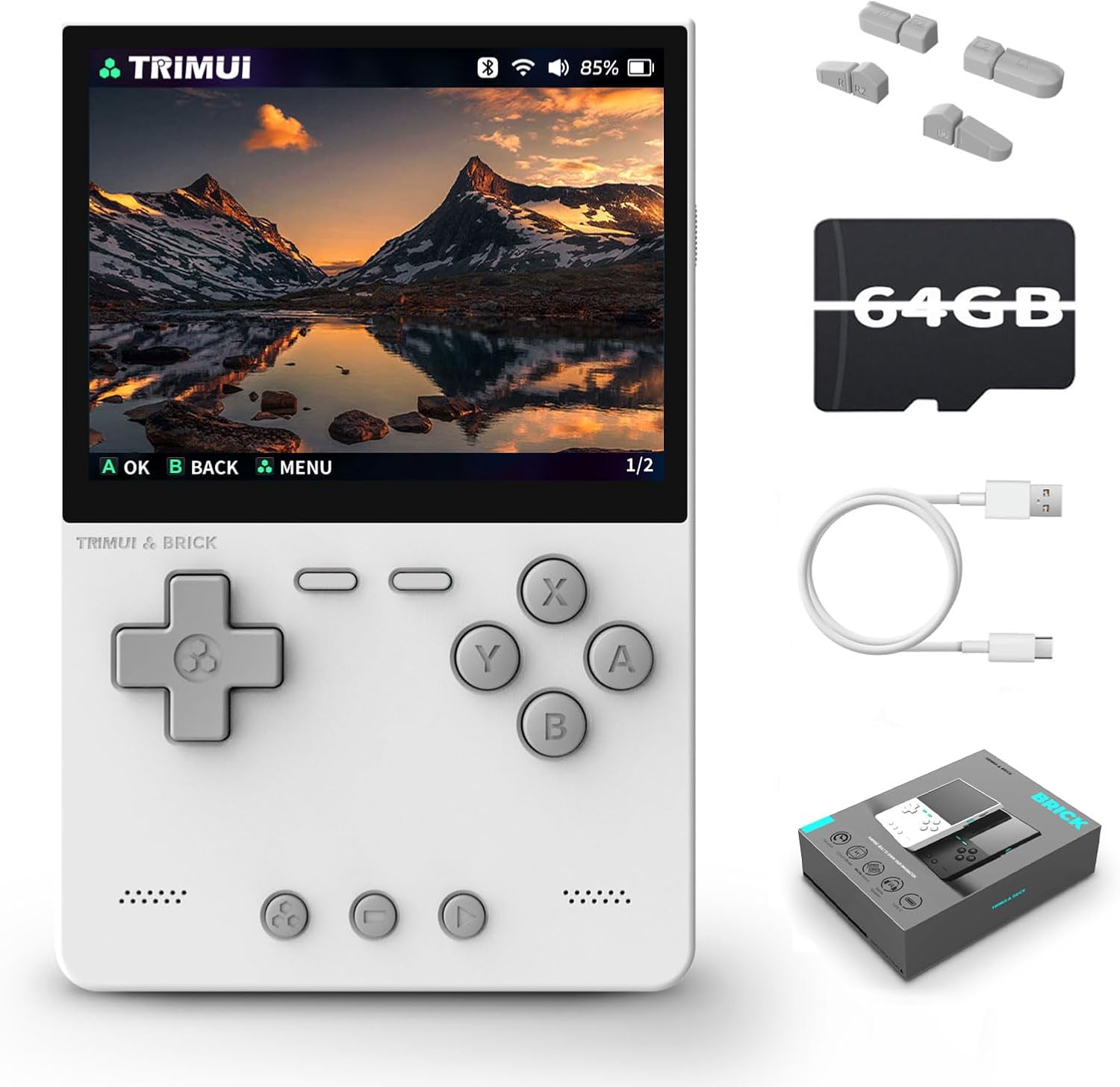 | Included Components | 1x 64G TF Card, 1x Trimui Brick Handheld Game Console (Purple), 1x USB-C Charging Cable, 1x User Manual, 2x Keycap |